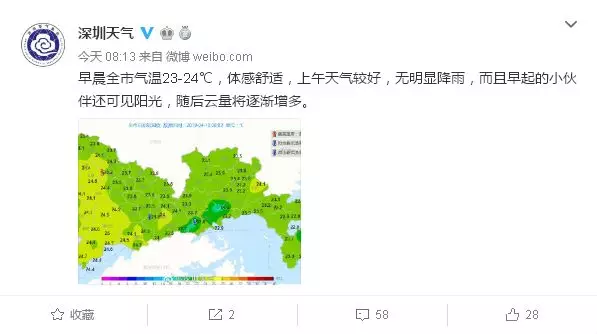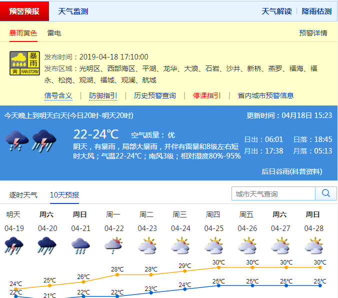 深圳新闻网2019年4月18日讯 今日天气:阴天间多云,午后转(雷)阵雨,夜间降雨趋于频密;气温22-27℃