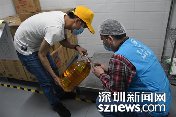 检测人员在对食用油进行抽样检查