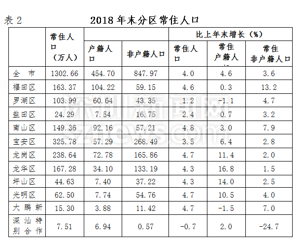 全市年末常住人口1302.66万人,比上年末增加49.83万人。其中常住户籍人口454.70万人,增长4.6%,占常住人口比重34.9%;常住非户籍人口847.97万人,增长3.6%,占比重65.1%。