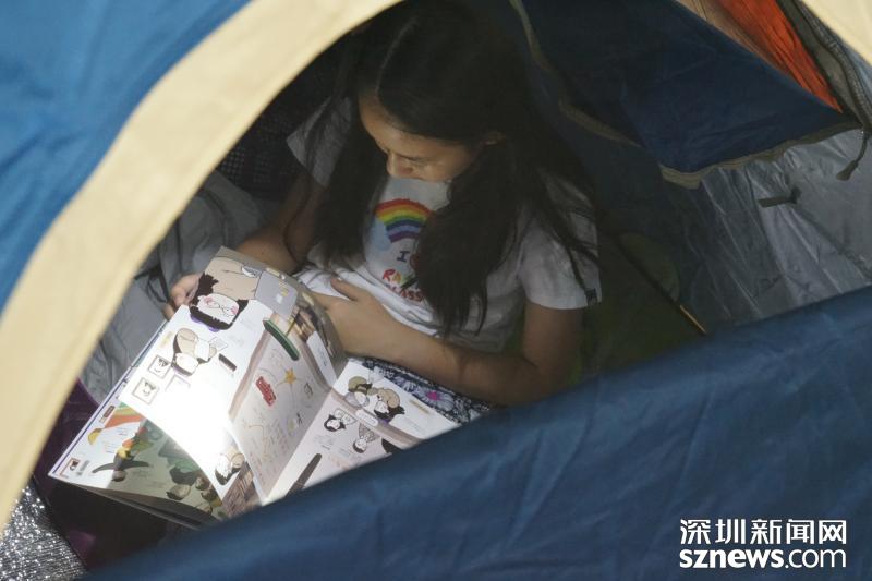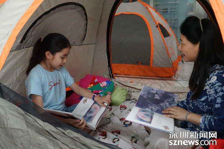 有的小朋友最期待的就是搭帐篷环节,因为亲手搭建一个自己的小窝感觉特别有趣。而有的小朋友最喜欢的是能够在帐篷里和妈妈一起看新书。这些新书,就是主办方深圳少年儿童图书馆送给小读者的另一份阅读好礼,馆长宋卫和小作家陈鹏宇、文字作家真真一起,亲手给小读者免费送上《蛇王》、《我们的一天》和《奇想文库》等童书。