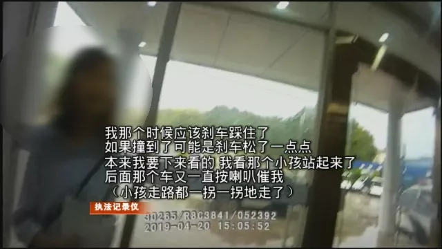 交警勘察发现,孩子是碰到了车头位置,衣服挂到了车牌,使得车牌一定程度变形。而驾车的女士也承认确实发生了事故。