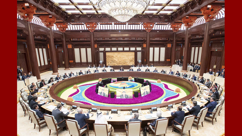 习近平致闭幕辞后,敲下木槌,宣布圆桌峰会闭幕。