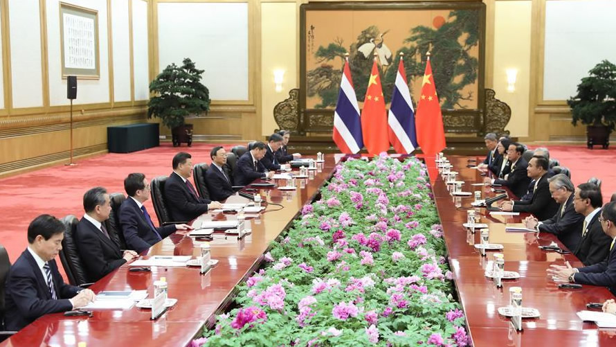 央视网消息(新闻联播):国家主席习近平26日在人民大会堂会见泰国总理巴育。