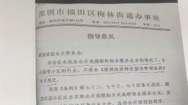 朱先生说,那名业主在发出他的举报信的同时,还发了一张梅林街道办的指导意见: