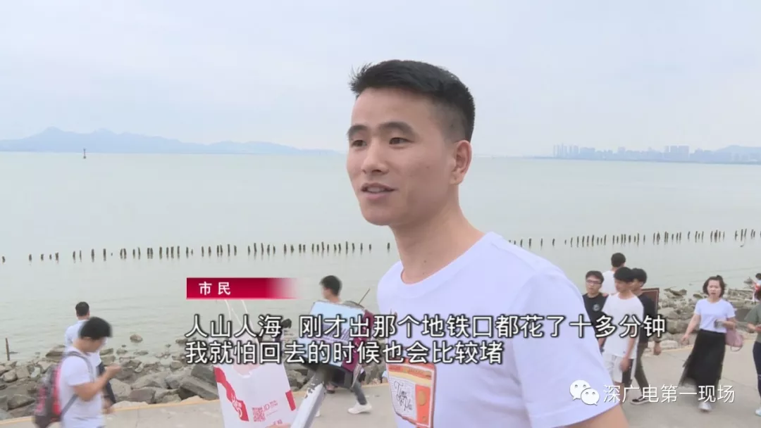 因为客流量过大,下午3点半开始,深圳湾公园附近的地铁站也实施了人流管控。下午4点左右,C出口的排队人数已达一千人,得花40多分钟才能进到站内。