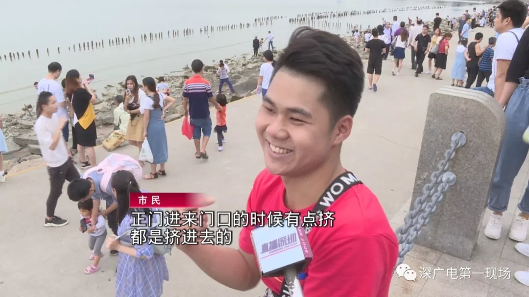 五一假期第一天,就有不少的市民朋友报料说,深圳湾公园人流爆棚,到处都是人挤人。下午5点,记者来到园区内的自动售卖机旁,发现已经挤满了人,不少人正在排队买水。