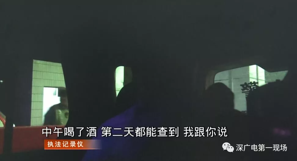 ↑事发在5月4日零点左右,从执法记录仪的画面中可以看到,一辆粤B号牌的小车开到深汕路龙岗立交桥路段时,在交警查前方车辆的空隙,司机赶紧跟后座乘客换了位置。
