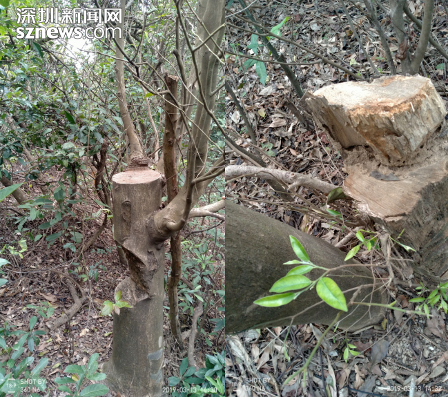 该网友提及的应人石村位于深圳石岩,从地图上看,其“后山”与羊台山森林公园连为一体,是附近居民闲暇时度假踏青的重要选择。据了解,网友“诗奴L”于今年3月中旬上山游玩,游玩途中发现原本茂盛的野生沉香树大多遭人砍伐。“不法分子穷尽一切手段,用钻、削、劈、锯等来对沉香树进行摧残,这简直是屠杀式的洗劫!”该网友表示,看到这么多野生沉香树被残暴砍伐,真地让人很气愤。
