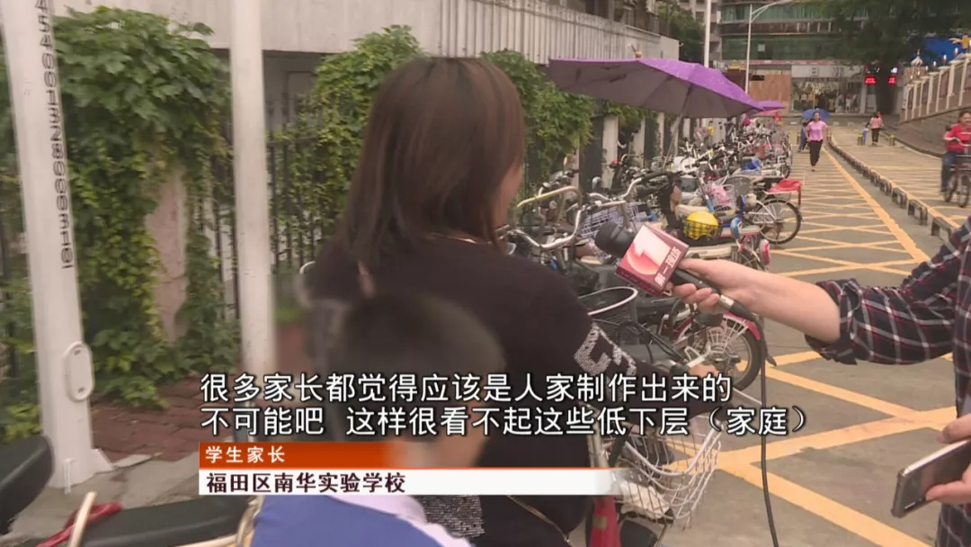 陈先生向我们栏目爆料,福田区南华实验学校在校园内公示了一段重要信息通告,在这份通告中,例如低层次家庭、最低水平的生源、行为与知识欠缺等字眼让他们看了十分难受。