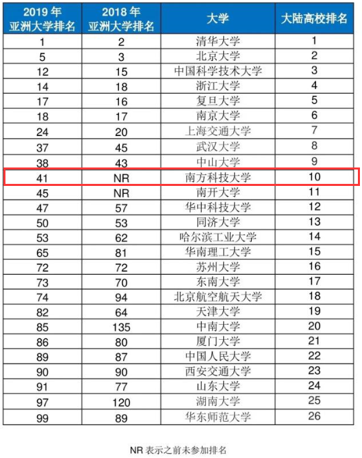 近日,2019年泰晤士亚洲大学排名出炉南科大排名内地10强