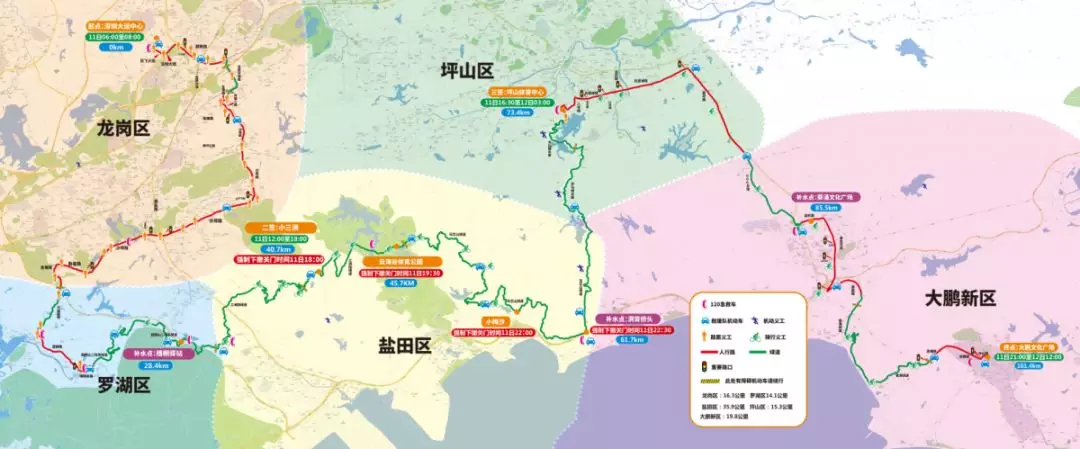 据悉,百里之行,始于龙岗大运体育中心止于大鹏文化广场,途径龙岗区、罗湖区、盐田区、坪山区和大鹏新区。用一个周末的时间放松心情、认识朋友用自己的脚印度量你所居住的这个城市。