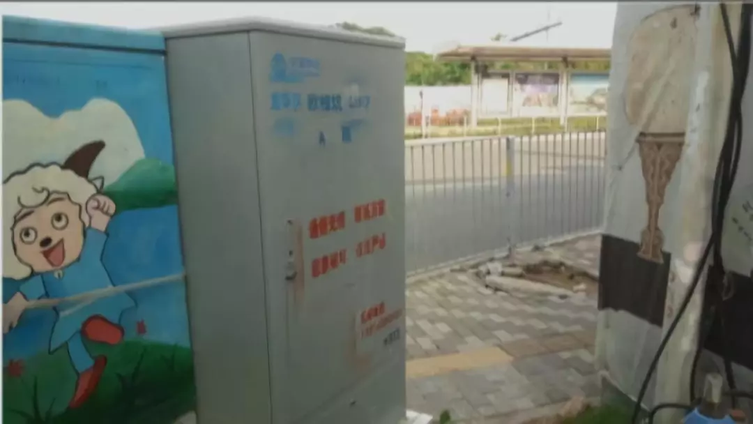 井盖附件的通信光缆箱,上面印有中国移动的标签。随后记者也联系了中国移动,但对方经过核实后,称井盖不是他们的,因为井盖上没有移动的logo。但是这个松动井盖上的logo早已模糊不清。