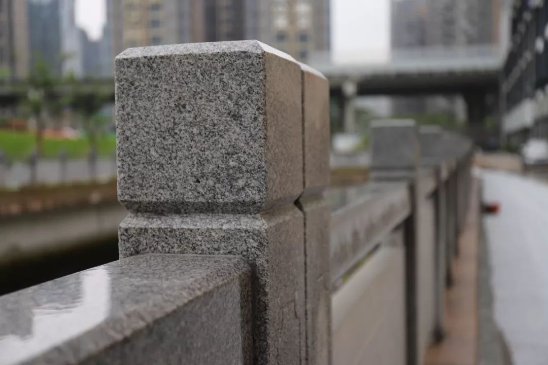 刚刚下班的周女士伏在共乐涌上游新修的石栏杆上