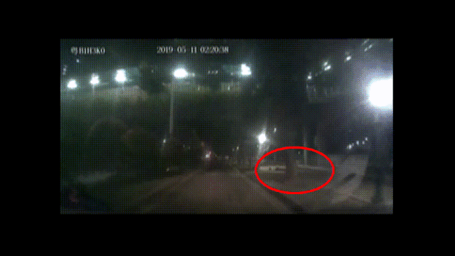 ↑从刘师傅提供的车辆监控可以看到,当时车辆正常行驶在机动车道,可倒地的男子却摔倒在人行道上,两者之间也有一定的距离。