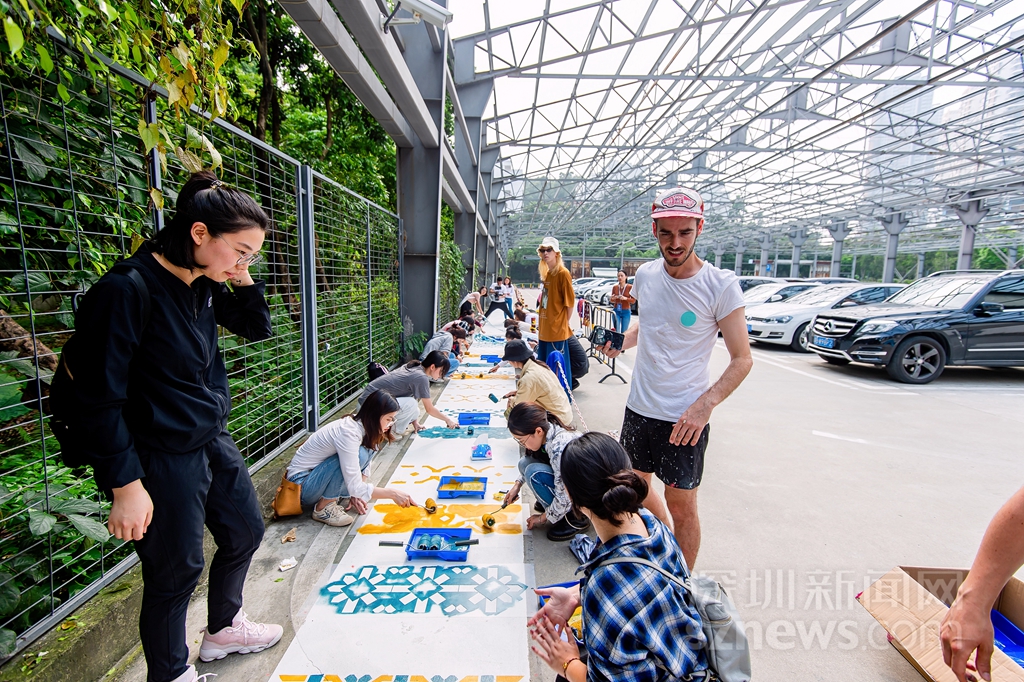 开幕前,艺术家邀请公众与志愿者共同完成花砖涂鸦作品《安全地带》(主办方供图)