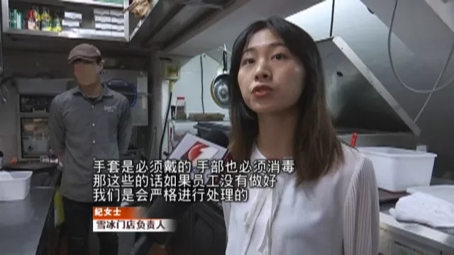 事件引起执法部门关注,市场监督管理局福田管理局华强北所的执法人员,突击检查这家雪冰甜品店的后厨。对于员工徒手加工食品的做法,雪冰甜品店负责人表达歉意。