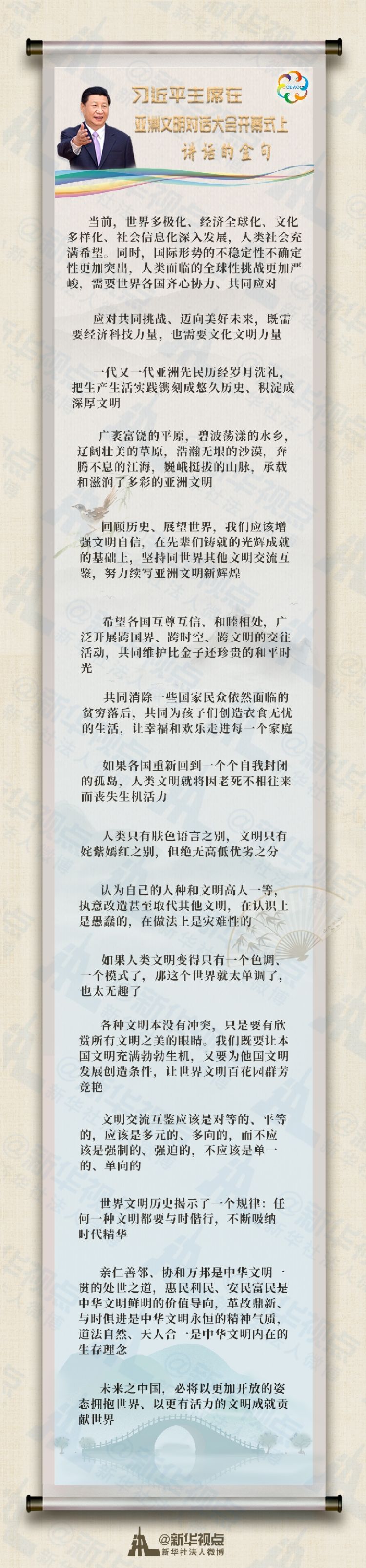 【国家主席习近平在亚洲文明对话大会开幕式上的讲话金句】