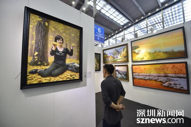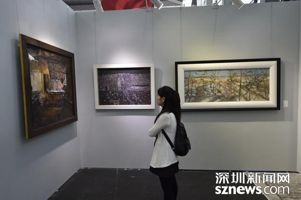 国内外知名艺术家展区,市民在观赏作品