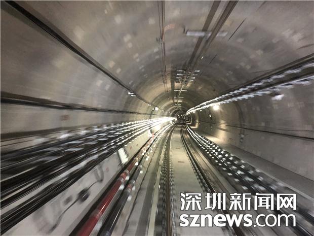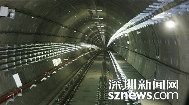 目前深圳地铁5号线二期工程新建线路轨道精调全部完成。图为隧道内部情况