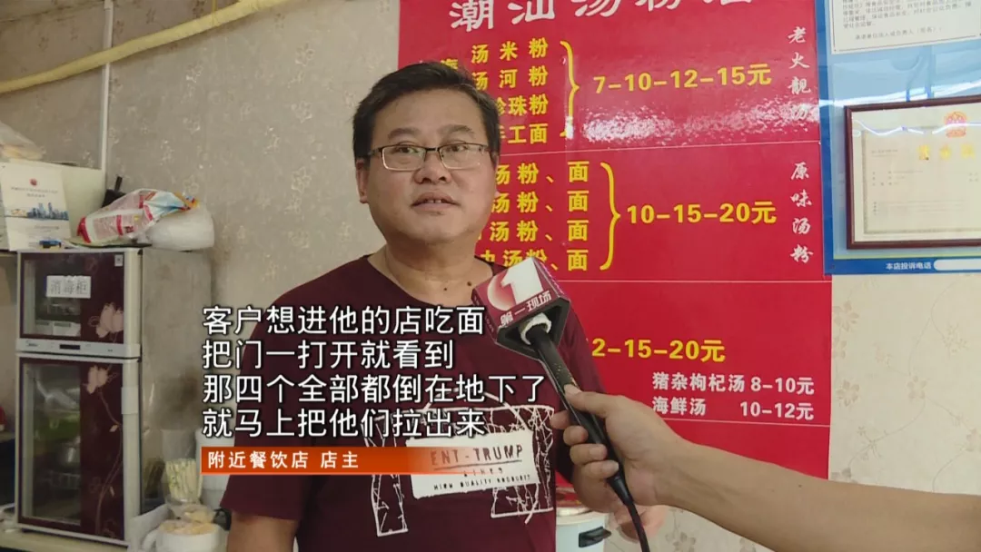 店铺打开门后,食客发现店内有四名人员倒地,大家立即将他们拉出来,并将店门敞开通风,拨打了120急救。
