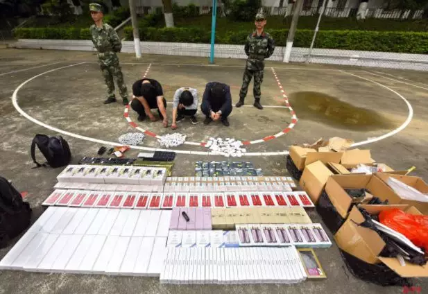 武警中尉李波燊驻守深港一线边界已3年,对此仍感慨不已。5月17日,武警广东省总队执勤第三支队七中队官兵在深港交界处南华村路段的一处居民楼查获一起利用无人机牵引飞线跨境走私案,捣毁窝点一个,缴获作案工具一批。