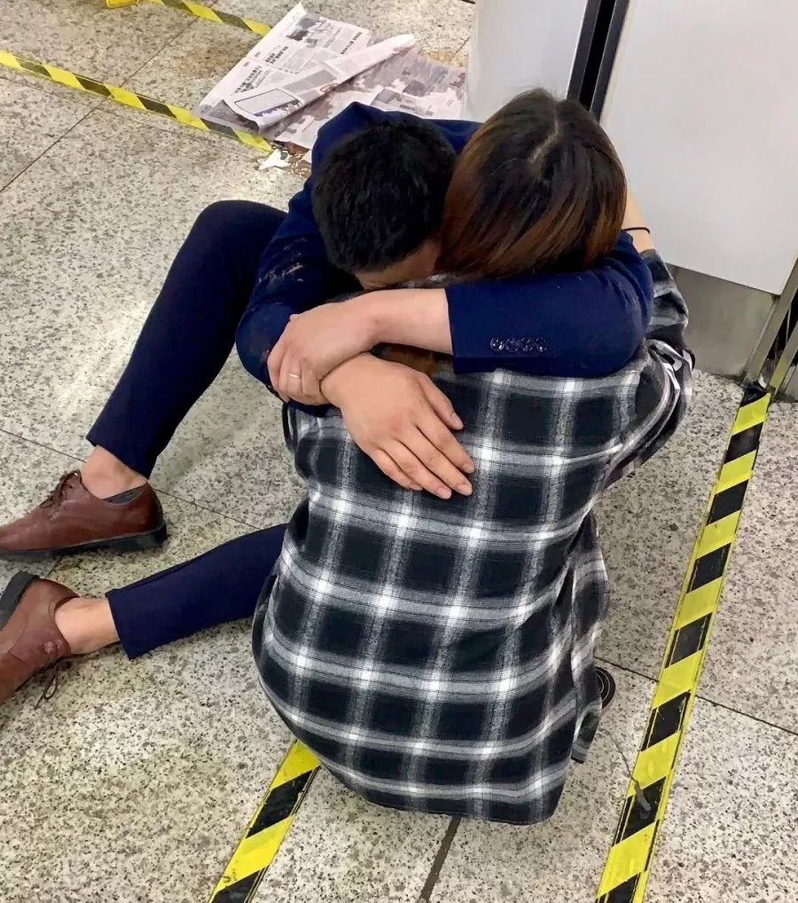 为了赶时间,郝康着急地跑向乘务员女友。图源:央视新闻视频截图