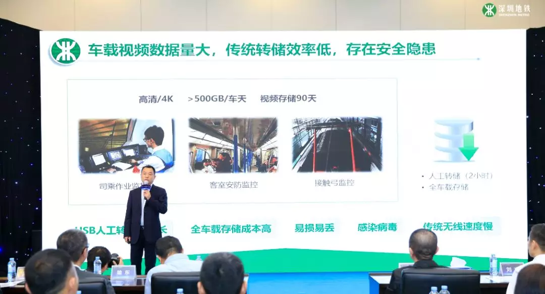 “为了满足乘客出行的安全、便捷需求,业界地铁的每一节车厢都搭载着多个摄像头,少则2个多至8个,从最初的模拟到标清,又从高清升级到4K”,深圳地铁相关专业负责人说,技术的发展带来了新的挑战,“车载数据都需要下传到地面,而其中的视频录像所占容量最大。