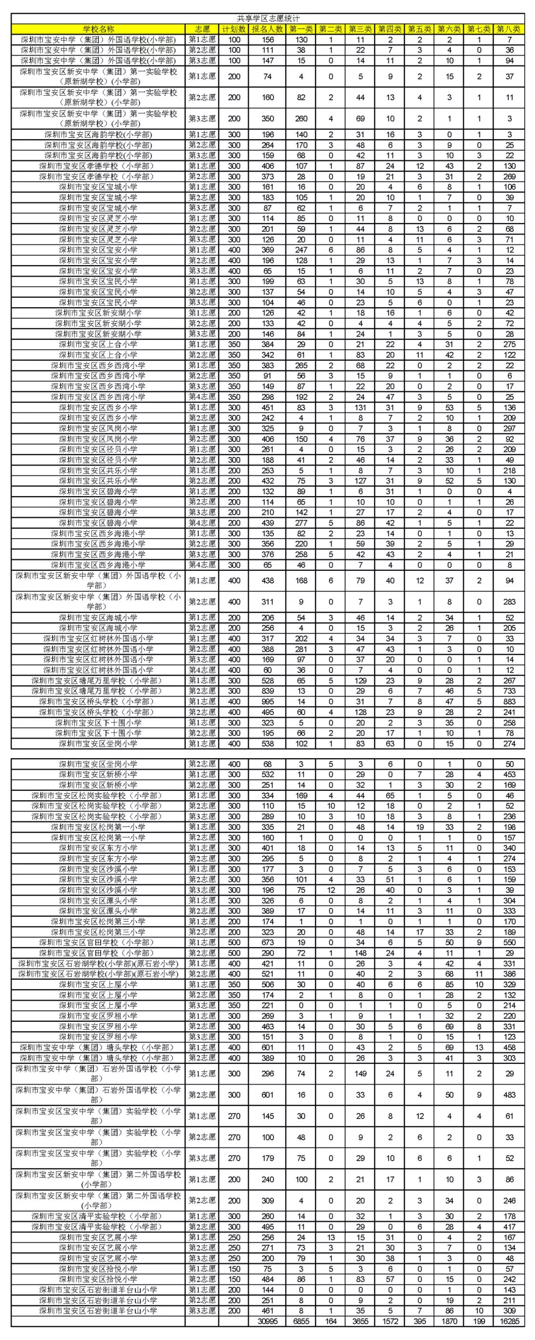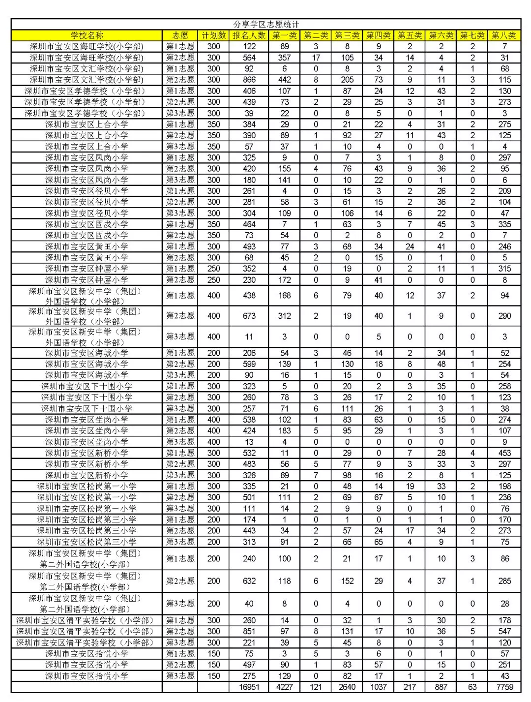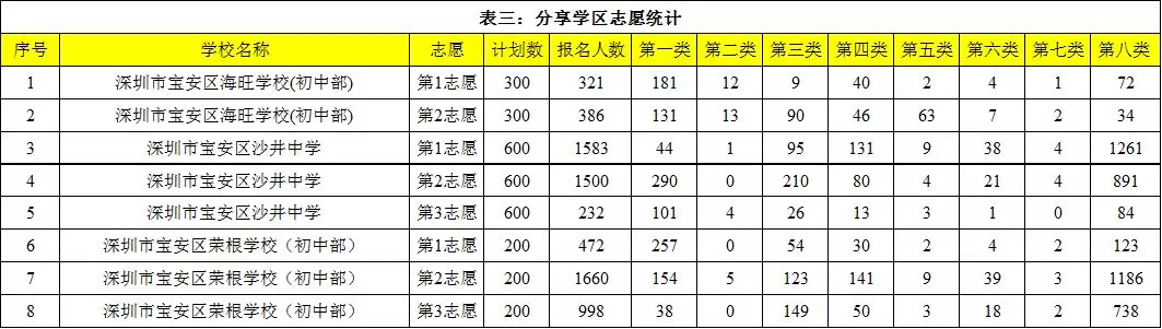 表三:分享学区志愿统计