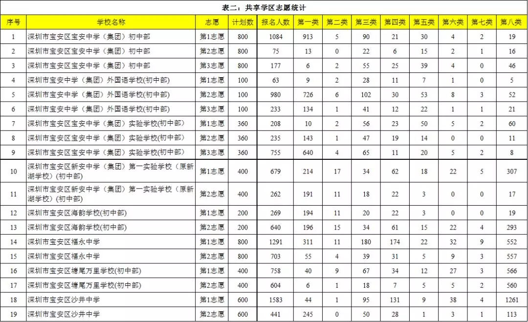 表二:共享学区志愿统计