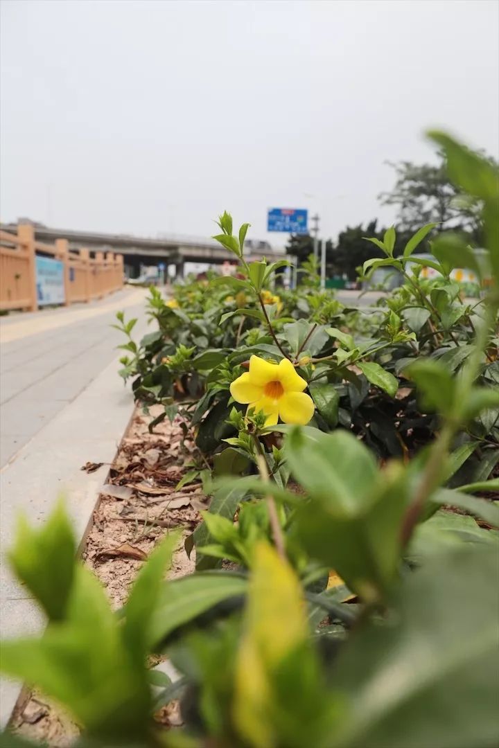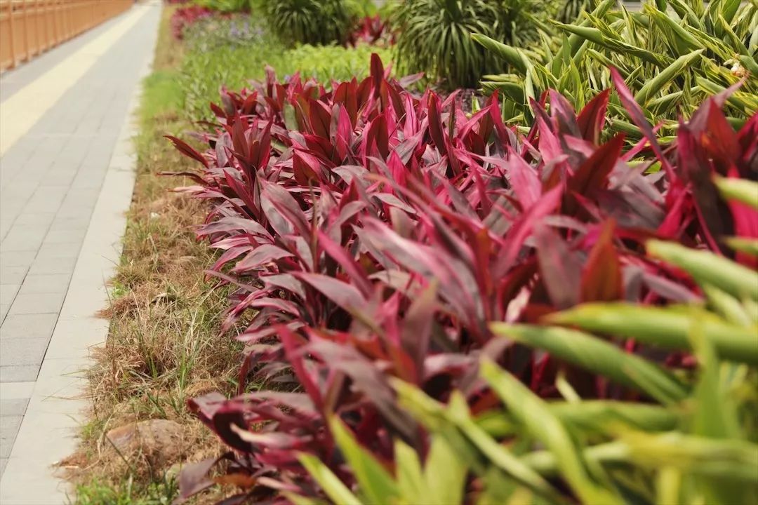沿岸茂盛的花草树木