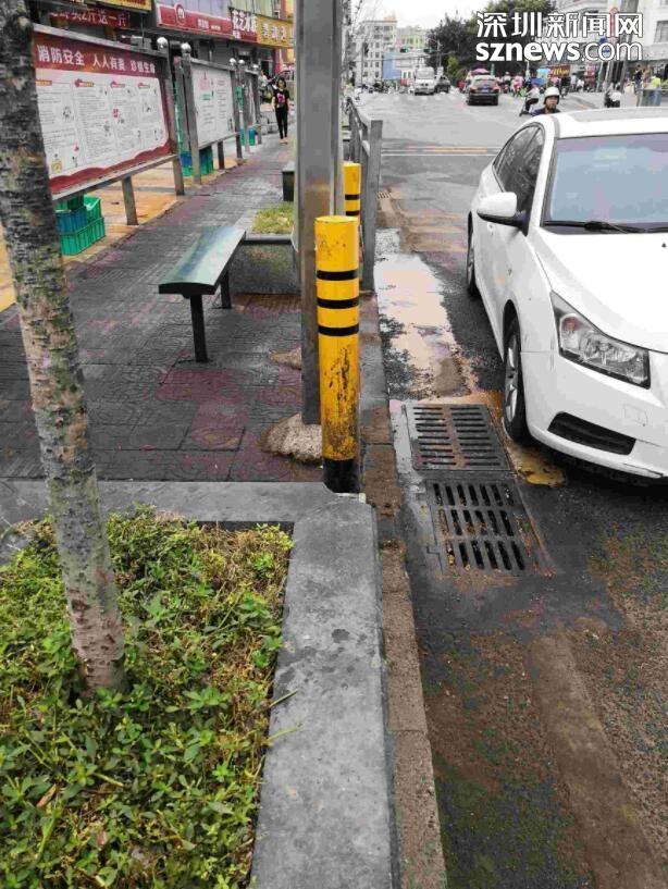 被熏黑的树干、污水横流的站台…石岩新村公交站环境好差!