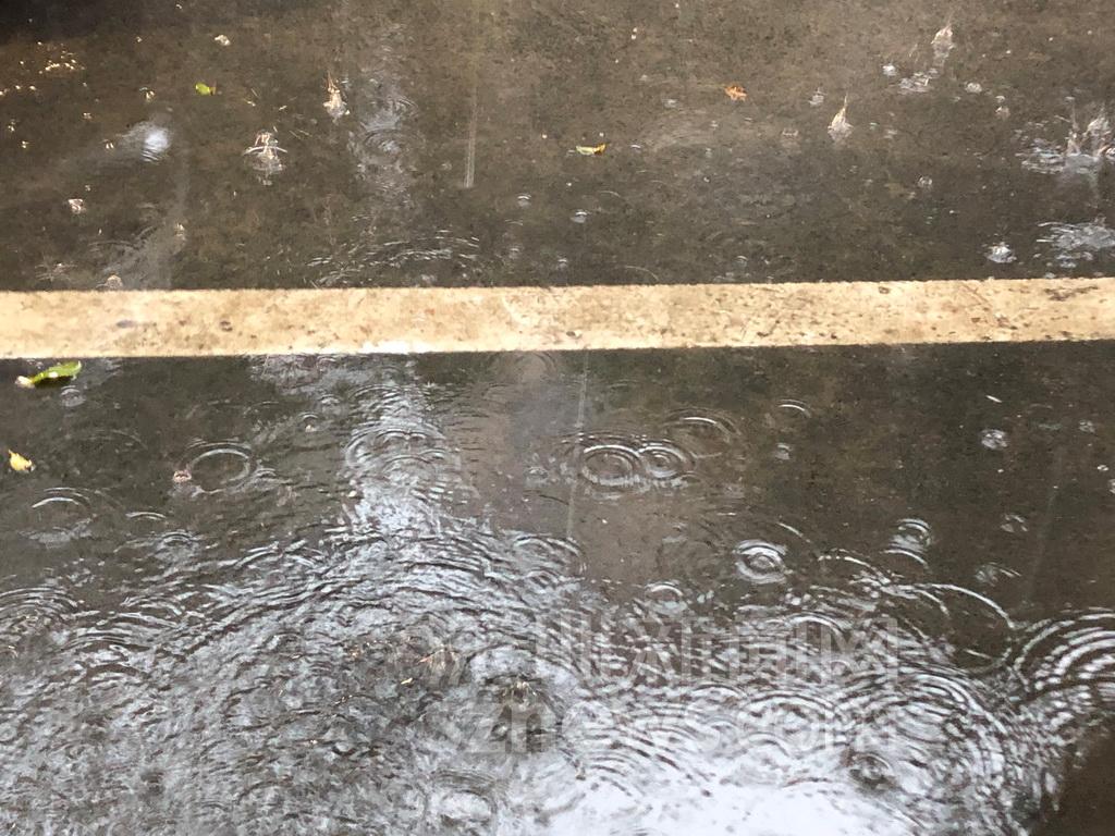 17时左右,松岗街道下起了阵雨。(记者 邵媛媛 摄)