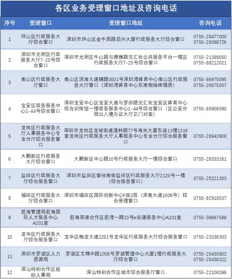 最后~我们来看下,深圳市“留学人员创业资助审批”业务受理窗口地址及咨询电话。