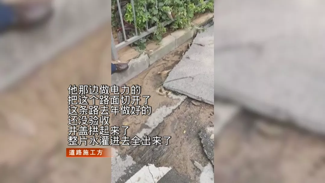 原标题:一场暴雨过后,刚铺好的沥青路成了渣渣!