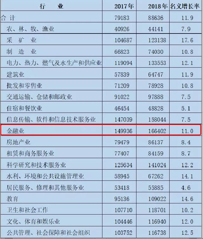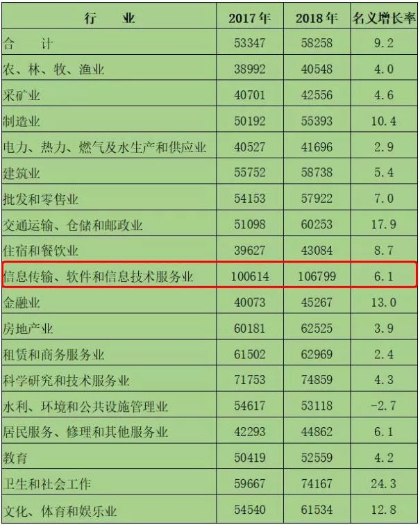 2018年城镇非私营单位分行业就业人员年平均工资。单位:元,%