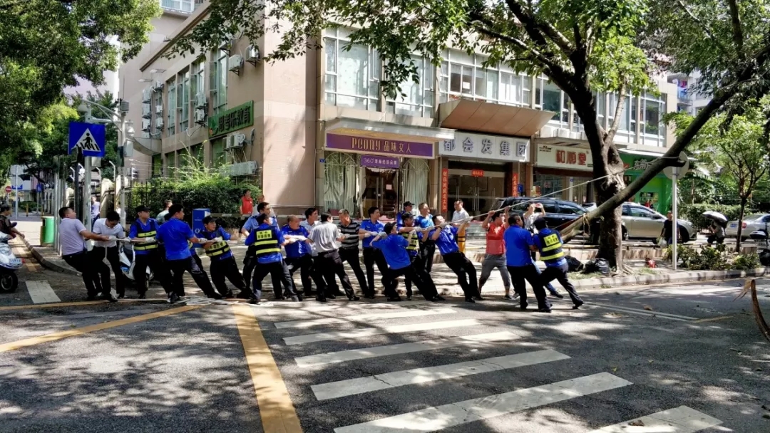 △2018年9月19日,“山竹”台风后,通心岭派出所在百花片区做灾后清理工作