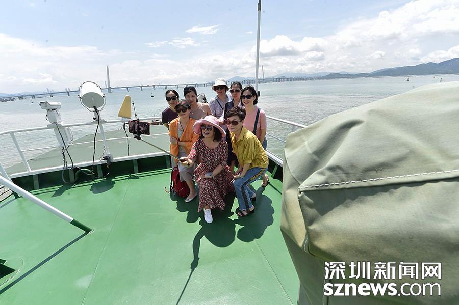 初次登船的市民非常兴奋,拿起自拍杆与船只合影留念