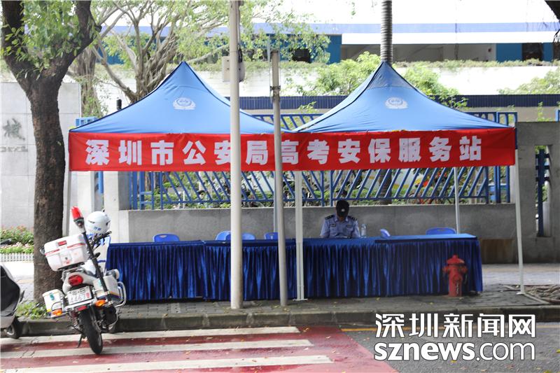 在深圳实验中学中学部考点外,深圳市公安局设置有高考安保服务站