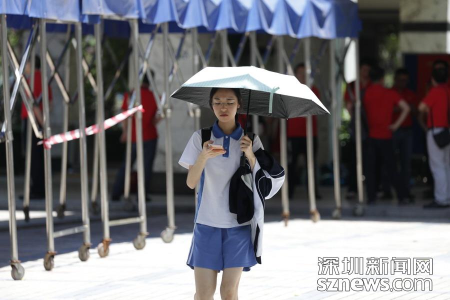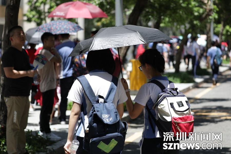 高考首日,深圳夏天的炎热初显威力,各路高考保障人员在炽热的阳光下有序开展工作:交警铁骑护送考生顺利抵达考场;爱心出租车免费接送考生;高考志愿者帮助协调考场外秩序……同时,比阳光更“炽热”的是送考家长们的热切和关心。