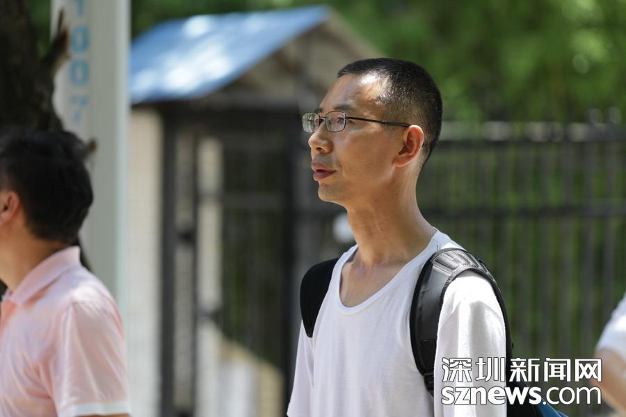 深圳实验中学老师等待在考点外,为学生发放准考证