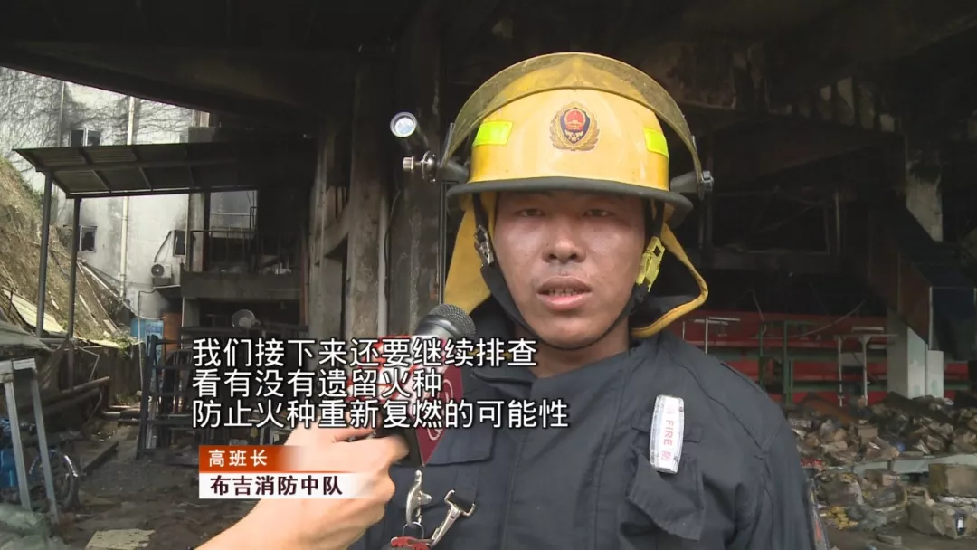 基本可以确定是电焊工误操作导致火灾,由于现场还要进一步降温,过火面积暂还无法计算。