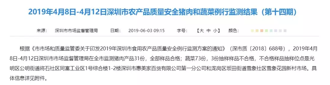 新的一期菜肉抽检通报