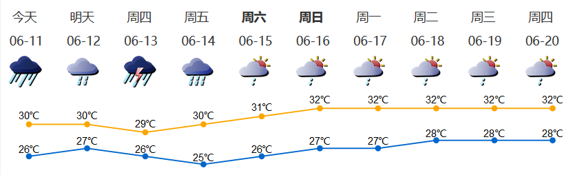 感谢关注由深新传媒出品的深新早点 提供全览式新闻集锦早餐服务 天下事,早知道 早上好啊,各位小伙伴们 受海上不断生成的降雨云团影响,早晨我市大部分地区有雨并伴有雷暴, 今日天气 我市今天早晨大鹏区有暴雨,其余地区有中雨,白天降雨减弱,有阵雨或雷阵雨,部分时间雨势较大;气温26-30℃;西南风2-3级,沿海、高地和海区最大阵风7级左右;相对湿度75%-95%。 来看看今天的深新早点有什么内容吧! 深圳事 1、深圳市教育局昨日发布《关于2015-2018年度优质办学幼儿园奖励评审结果的公示》,决定对2015-2018年度优质办学幼儿园进行奖励。经市级评审组复核及专家现场评审,评选出140所优质办学幼儿园。 2、6月10日,2019深圳荷花展(深圳市第30届荷花展)在洪湖公园开幕,500多个荷花品种较去年又新增了50个。本届荷花展将持续到6月24日。今年的花展以“荷你偶遇”为主题,以百亩荷塘自然生态景观为依托,着力打造特色花境,展示荷花新优品种。 3、2019年底前基本取消全省高速公路省界收费站,实现不停车快捷收费;7月1日起ETC用户行驶全省高速公路通行费九五折优惠……6月10日,全省深化收费公路制度改革取消高速公路省界收费站电视电话会议上传来消息,广东将加快推进各项工程建设,加大力度推广ETC安装发行,确保2019年底前取消全省所有省界收费站。 4、记者从市地铁集团获悉,深圳正全力打造“智慧交通”,地铁四期在建的12号线、13号线、14号线、16号线4条地铁线将采用“无人驾驶”模式。 5、记者从深圳市医疗保障局获悉,6月30日前力争医疗保障业务进驻我市所有街道和各区行政服务大厅,全面实现医保“企业服务不出区、个人办事不出街道”。 6、6月1日至6月10日,深圳120共接到中暑报警24宗,平均每天有2宗中暑报警。(市急救中心提醒市民,高温天气务必注意降温避暑,尽可能避免在烈日下工作、活动,在中午前后高温时段尽可能避免外出。老人、小孩、孕产妇、心血管疾病患者和环卫工人等户外工作者,在炎热天气里更要谨防中暑。) 7、6月12日,深圳交警将联合多部门开展涉摩托车、电动自行车的交通违法行为综合整治行动。本次行动,交警部门将出动140组警力,联合公安分局、街道办等部门力量,从严查处摩电车辆的各类交通违法行为。 8、6月10日下午,市生态环境局与深圳信隆健康产业发展股份有限公司、签订深圳首份生态环境损害赔偿协议。这是深圳落实《生态环境损害赔偿制度改革方案》《广东省生态环境损害赔偿制度改革实施方案》要求,推行生态环境损害赔偿制度改革的最新进展。 9、记者从龙岗区住房和建设局获悉,龙岗区2019年度第一批次面向辖区内户籍在册轮候人公共租赁住房配租工作于6月10日启动,共有472套住房供配租。 10、因新线建设工程需要,6月14日(星期五)深圳地铁5号线将提前结束运营,当日运营时间调整为6:30~21:00。请广大乘客提前做好出行安排,详情可留意车站公告。 天下事 1、习近平向哈萨克斯坦当选总统托卡耶夫致贺电。 2、李克强签署国务院令,公布《中华人民共和国人类遗传资源管理条例》。 3、中共中央办公厅、国务院办公厅印发《关于做好地方政府专项债券发行及项目配套融资工作的通知》。 4、商务部向社会依法披露直销备案产品、直销培训员和直销员复核登记信息。其中,直销备案产品复核后,数量减少近半。 5、《2018年我国互联网网络安全态势综述》数据显示,中国遭受的网络攻击主要来自美国。 6、端午小长假期间,全国铁路累计发送旅客5074.4万人次,同比增加363.6万人次,增长7.7%;全国民航共运送旅客482万人次,同比增长3.1%。 7、有媒体报道,一些日本网红眼药水今年4月已被加拿大列入禁售名单。多位眼科医生介绍,市场上多款网红眼药水不在处方药序列,对其成分的监管存在难度。 8、欧盟宣布斥资8.4亿欧元新建8个超算中心。 9、美国航空公司发表声明,宣布将波音737MAX型客机的停飞日期从8月19日延长至9月3日。 10、在2019年法网男单决赛中,西班牙选手纳达尔击败奥地利人蒂姆,成为历史上首位在同一项大满贯赛事中12次问鼎冠军的运动员。 科技&财经 1、海关总署发布数据,今年前5个月,我国货物贸易进出口总值12.1万亿元,同比增长4.1%。 4、“实验2”号海洋科考船10日从广州起航,将对珠江口海域开展为期10天的多学科综合性调查。 编辑:梁煖 配音:张倩 校审:施翔东 转载请注明出处