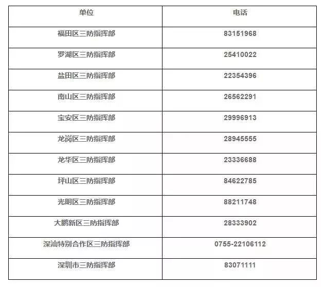 1、各区三防指挥部联系方式