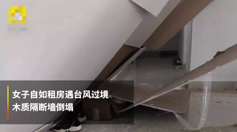 2018年9月台风“山竹”登陆期间,市民姚女士租住的自如公寓里,一面隔断墙突然倒塌,墙卸下来里面就是很简单的木板。经过几个月协商,自如在2019年1月,赔偿姚女士近5千元。