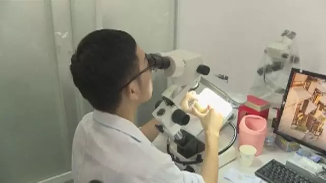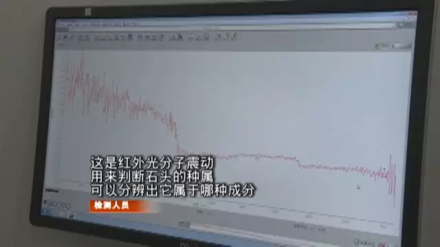 在记者说明来意后,工作人员接过单先生的石头进入实验室,首先用小电筒和宝石显微镜,进行外观检测。然后将石头放到这台,叫“傅里叶变换红外光谱”的仪器,检测它的分子结构。