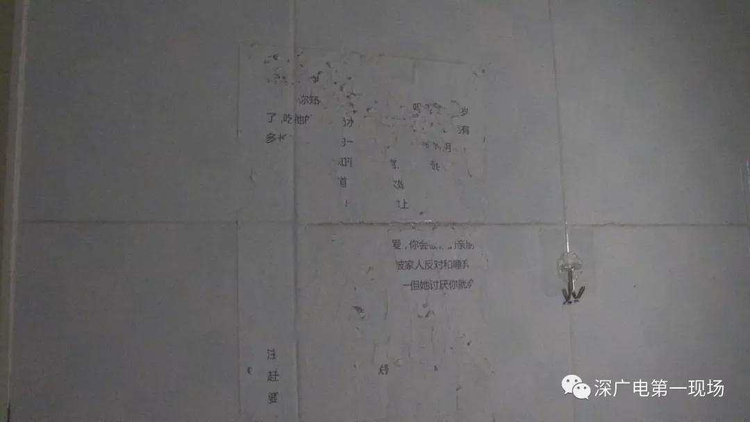 ▲贾女士家门墙上,男子张贴侮辱性文字告示,已被贾女士清除