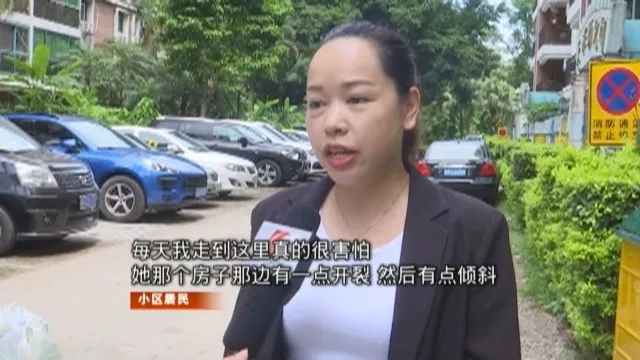 深广电第一现场2019年6月20日讯 家住福田的靳女士跟我们栏目爆料称自家楼上的天台竟然有“碉堡”耸立足足有4层楼高!还有裂痕,看着十分吓人!