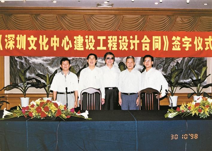 谭嗣英(左三)出席《深圳文化中心建设工程设计合同》签字仪式。