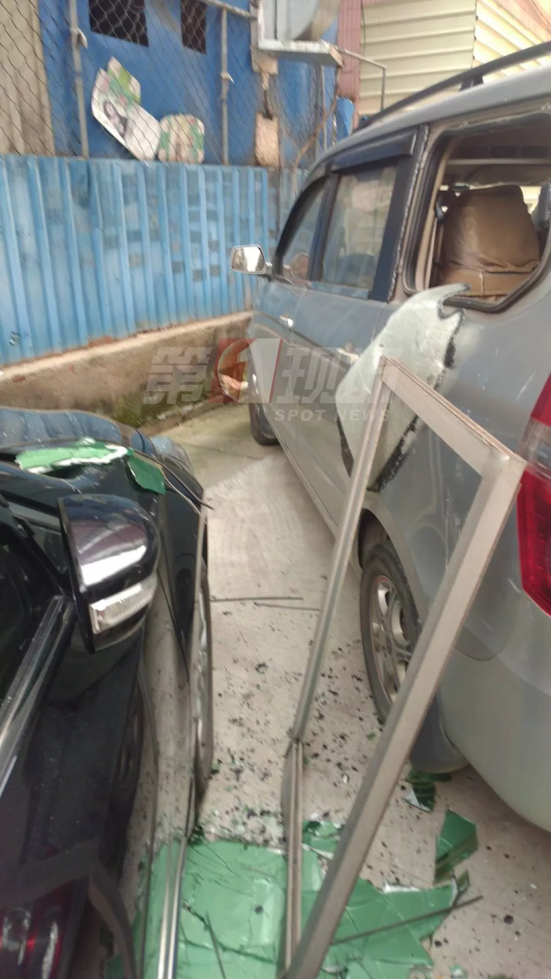 一声巨响!玻璃窗4楼坠下砸中小车,车主不知找谁赔!